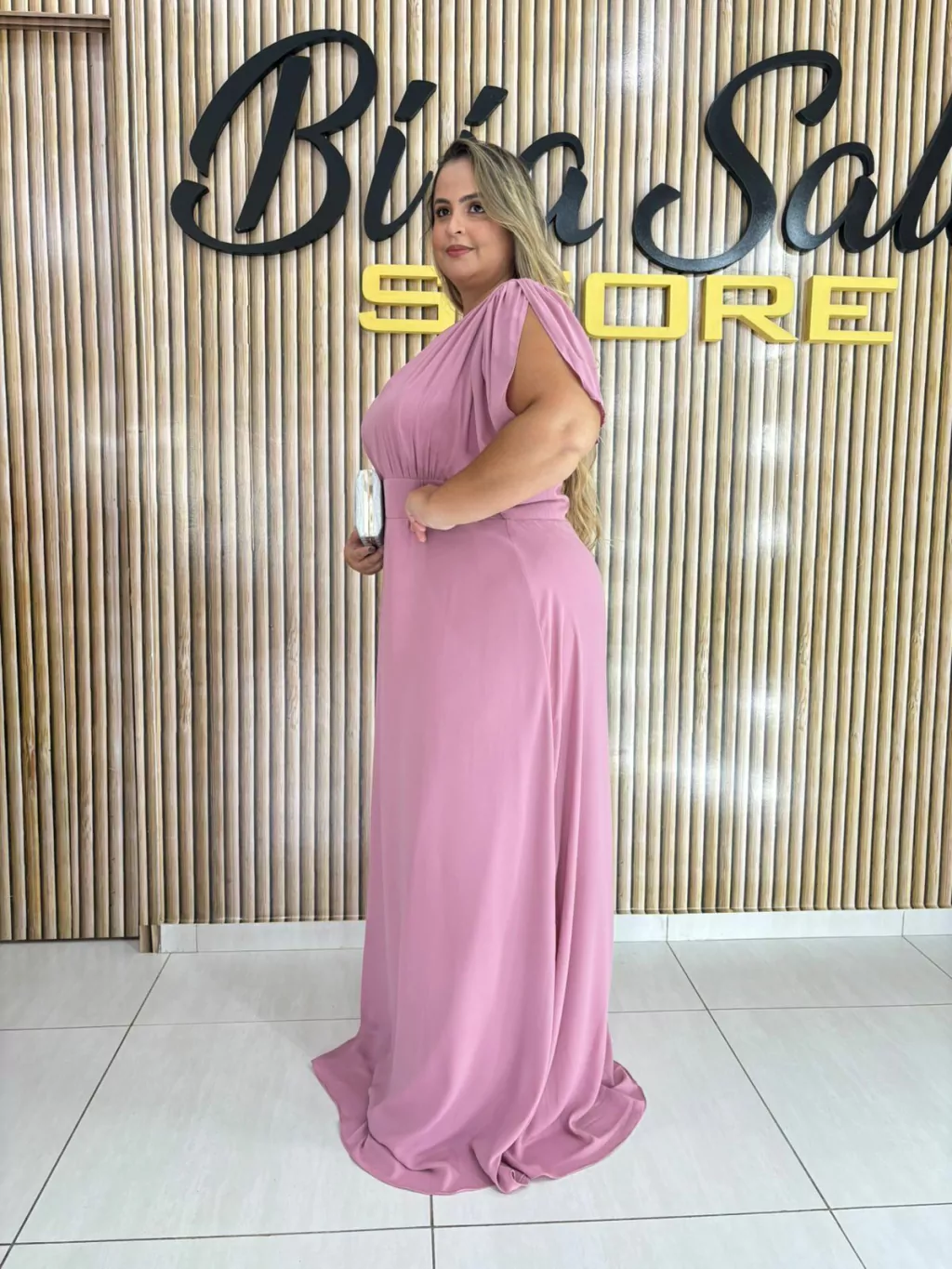 Confeccionado no tecido Chiffon, textura leve, com movimento, elegante e sofisticado. Possui forro, nao acompanha bojo e detalhe de abertura na manga, que produz um charme a mais para o vestido.