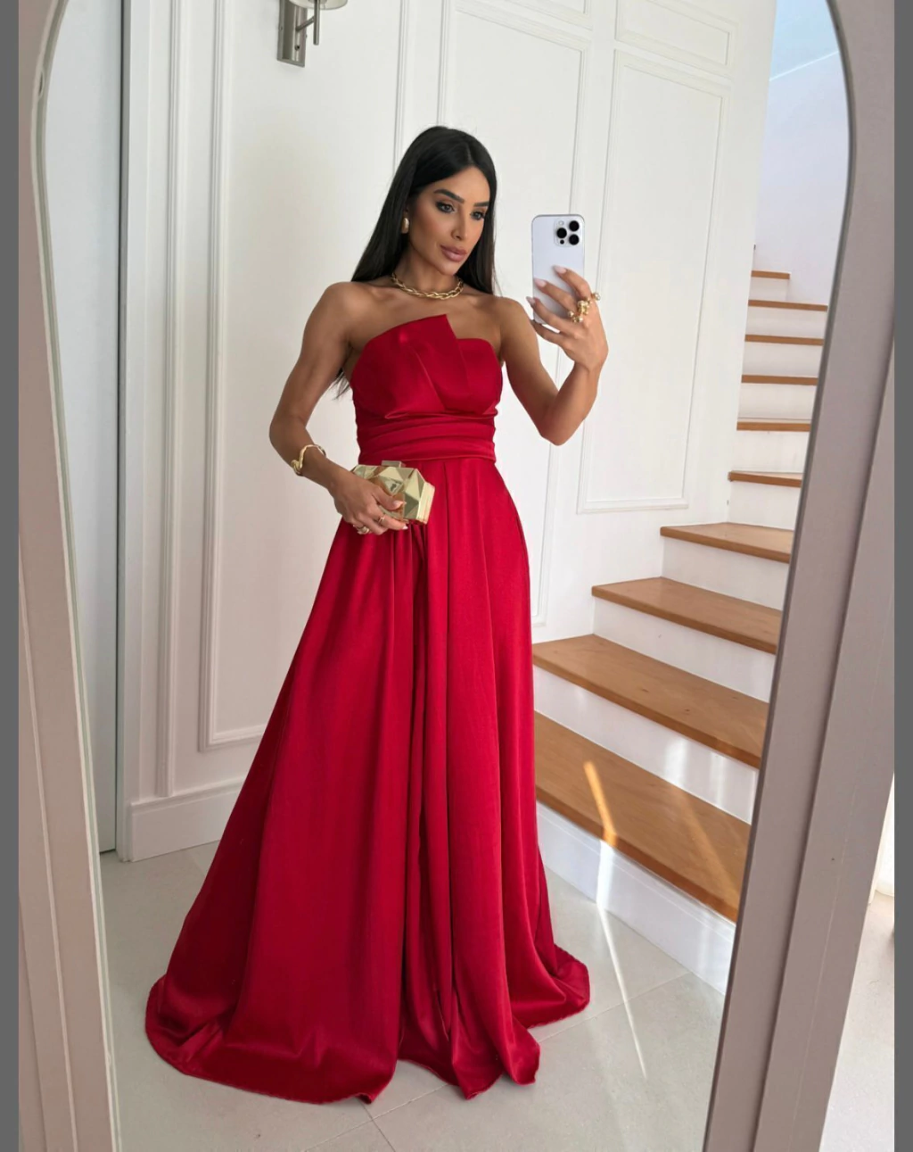 Vestido no tecido Prada. Encorpado e com elastano de conforto, sua superficie acetinada que remete ao glamour e sofisticação. Acompanha forro e bojo, detalhe de bico no busto e com vazado bem discreto entre o busto, uma fenda espetacular, um charme a mais no vestido. Fechamento em ziper e detalhe de amarração cruzada atras, nas costas.